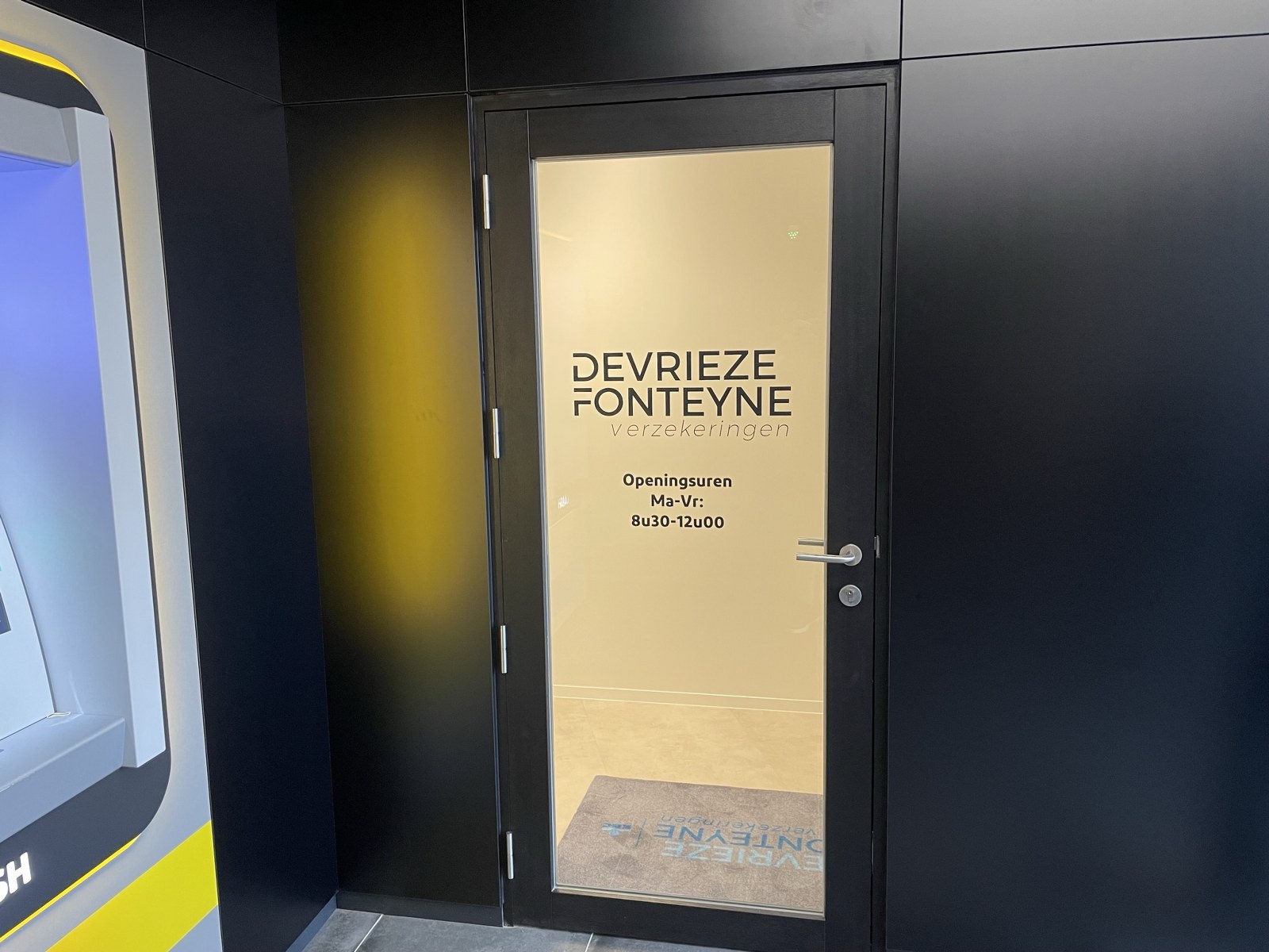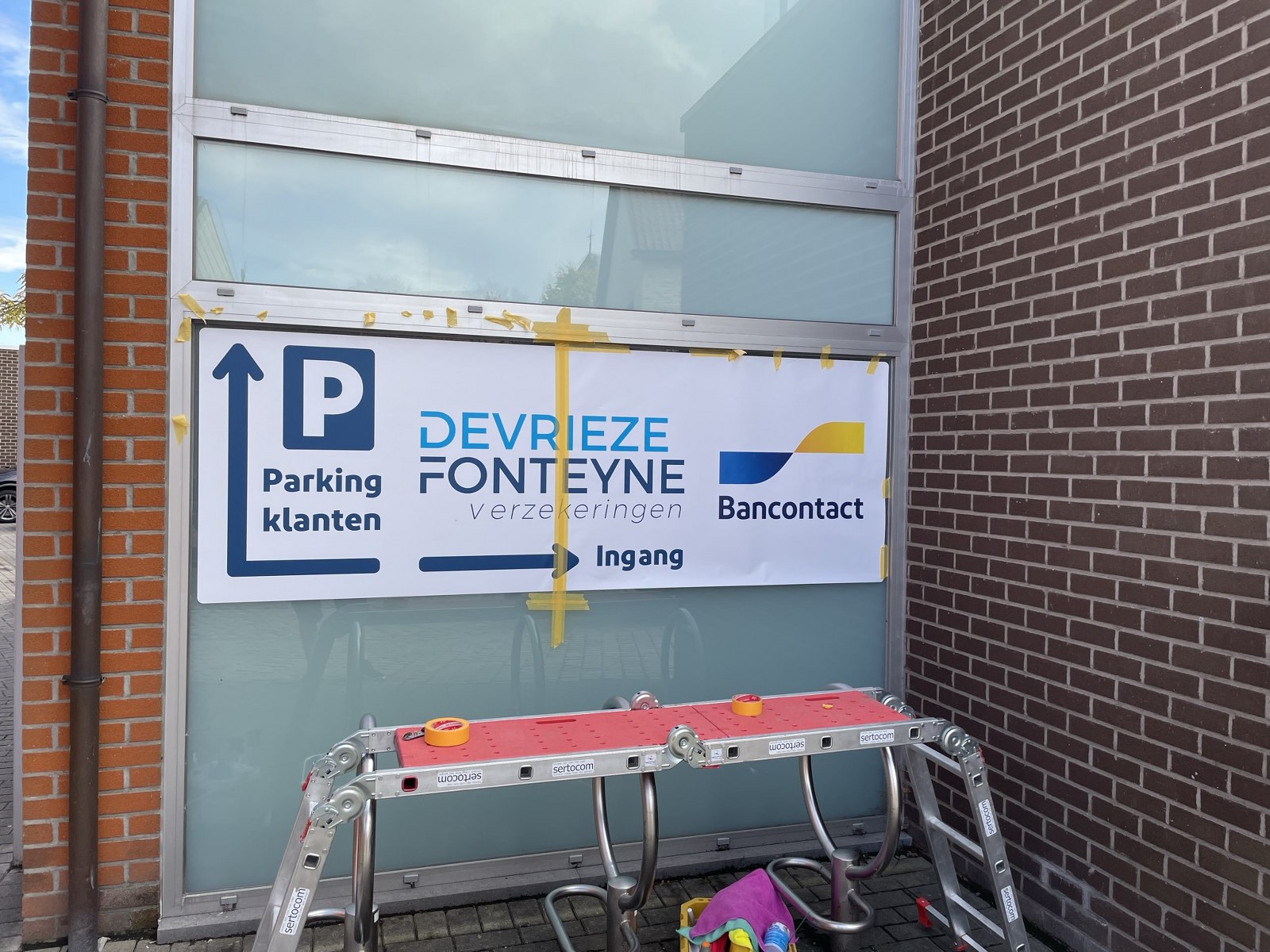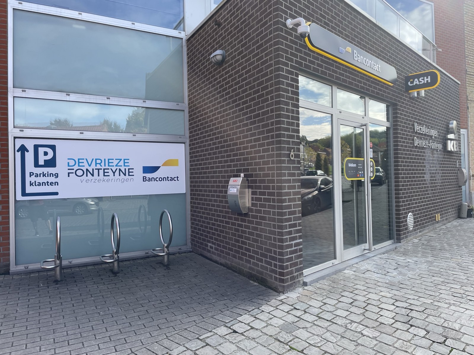 Voor Verzekeringen Devrieze - Fonteyne KBC mochten wij hun nieuwe kantoor in Kemmel voorzien van belettering. Met dit kantoor willen ze tegemoet komen aan de vraag van omwonenden. Een nieuw aanspreekpunt voor het regelen van hun verzekeringen. Ook is het kantoor uitgerust met een bancontact.